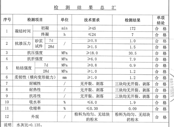(2)TWE984防水砂漿同時防腐 氯離子滲透性測試:按照DL/T5126-2001中6.8的規定進行,其中制備砂漿試件尺寸70.7mmX70.7mm,試件在標準試驗條件下養護,在氯化鈉溶液中浸泡天數為7d。 |