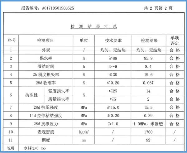 2 | 抗滲壓力(薄層)/MPa | ≥0.8 | |