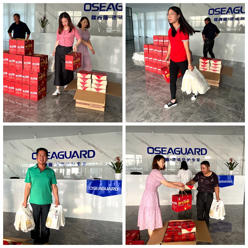 “八月十五月兒圓,金桂盛開伴餅香"一年一度的中秋佳節即將來臨,為了讓大家度過一個美滿幸福的中秋佳節,感受到節日喜慶和溫馨的氣氛,同時也為了感謝大家辛勤的工作。歐西盾防水為全體員工發放中秋福利!