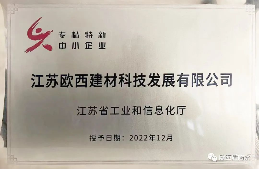 歐西盾防水成功通過2022江蘇省“專精特新” 中小企業認定