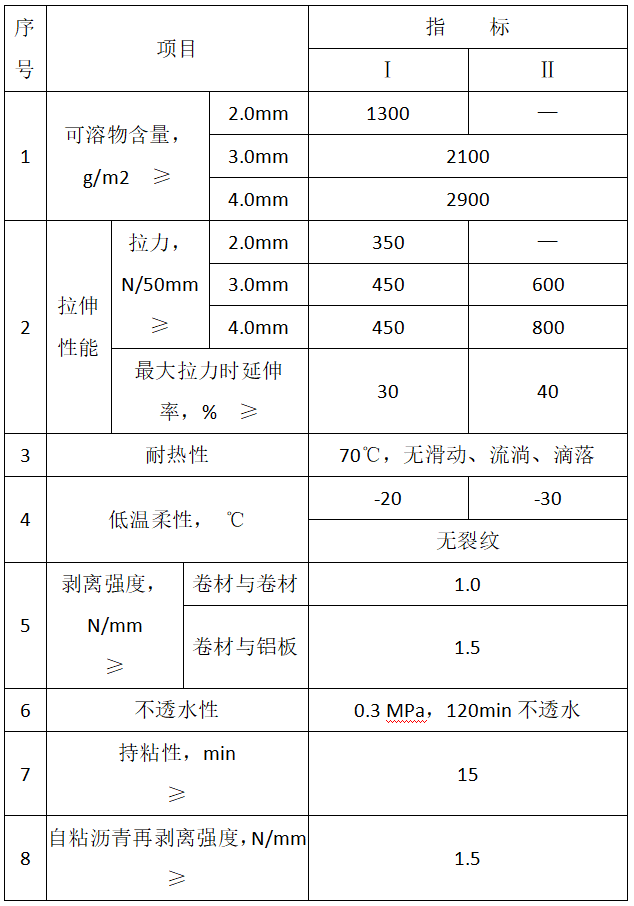 按物理性能分為I型 和II型,卷材厚度為2.0mm的PY類只有Ⅰ型。