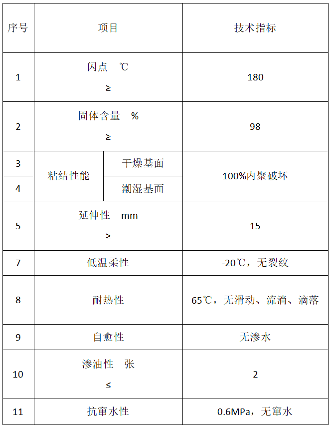 (5)耐溫、耐侯性:非固化防水膠的耐低溫性能可達(dá)到-20℃ 以下,耐高溫性能可根據(jù)不同工程的需要制作成40—90℃ 之間的任何一個高溫指標(biāo)。